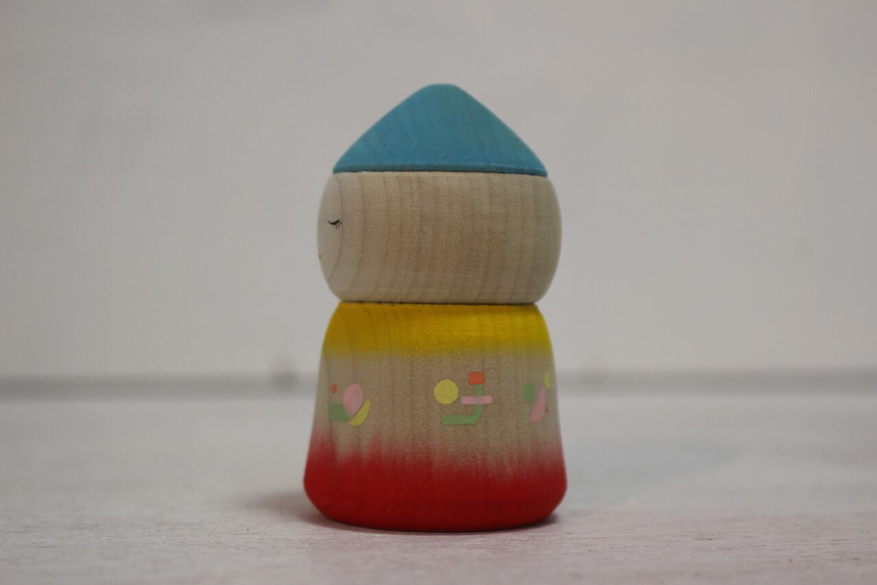 背が低いってだけで、なんだってんだい。 木地 : 南部系伝統こけし工人 田山和泉 着彩 : 水彩絵の具 高さ : 約 6.5cm ※水彩絵の具での着彩の為、濡れた手で触ったり、水滴などが付くとにじみや掠れなどが生じます。水気には充分ご注意ください。