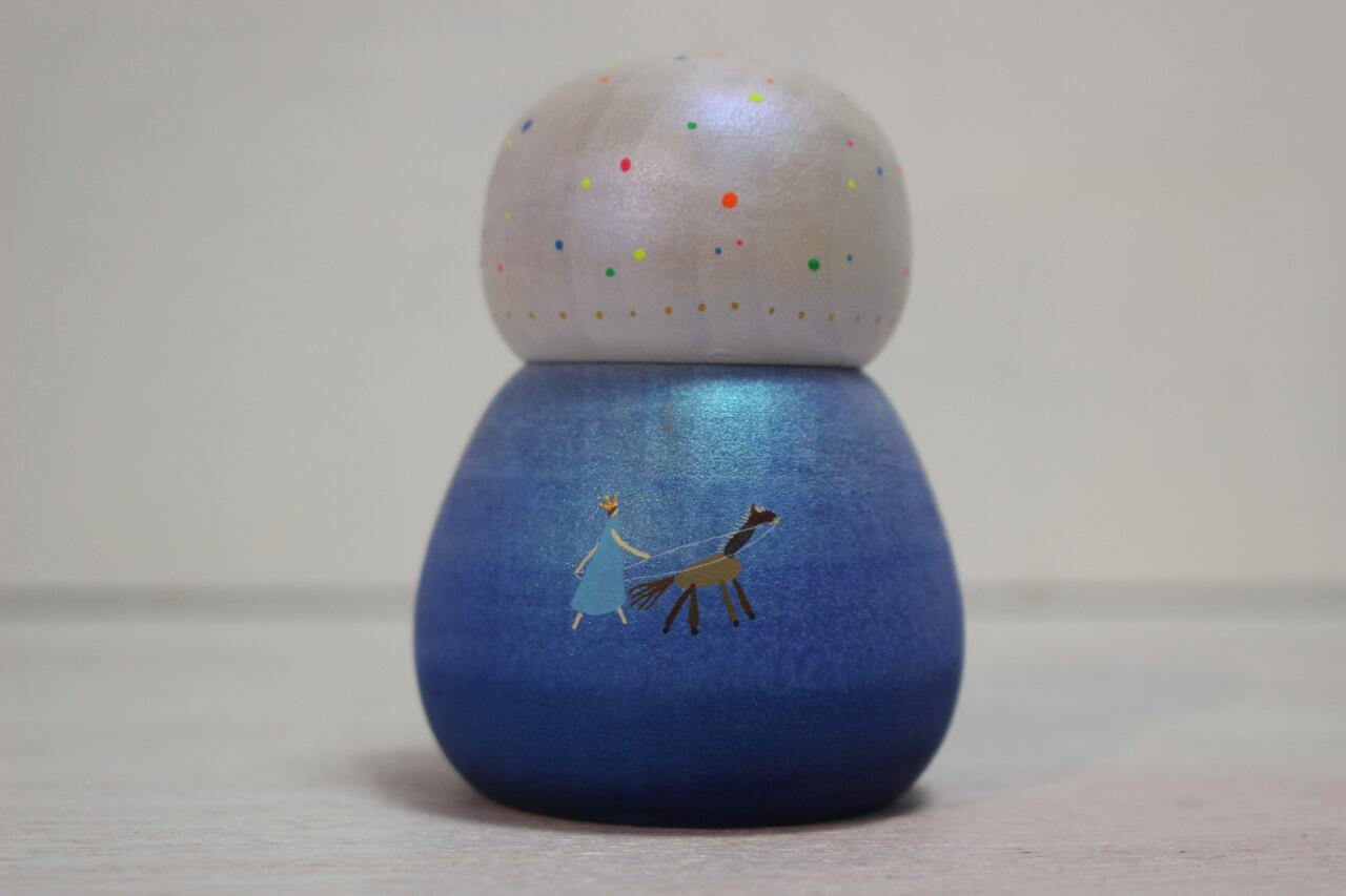 祈りは廻って淡く白く発光する 木地 : 弥治郎系伝統こけし工人 上田康友 着彩 : 水彩絵の具 高さ : 約 8cm ※水彩絵の具での着彩の為、濡れた手で触ったり、水滴などが付くとにじみや掠れなどが生じます。水気には充分ご注意ください。