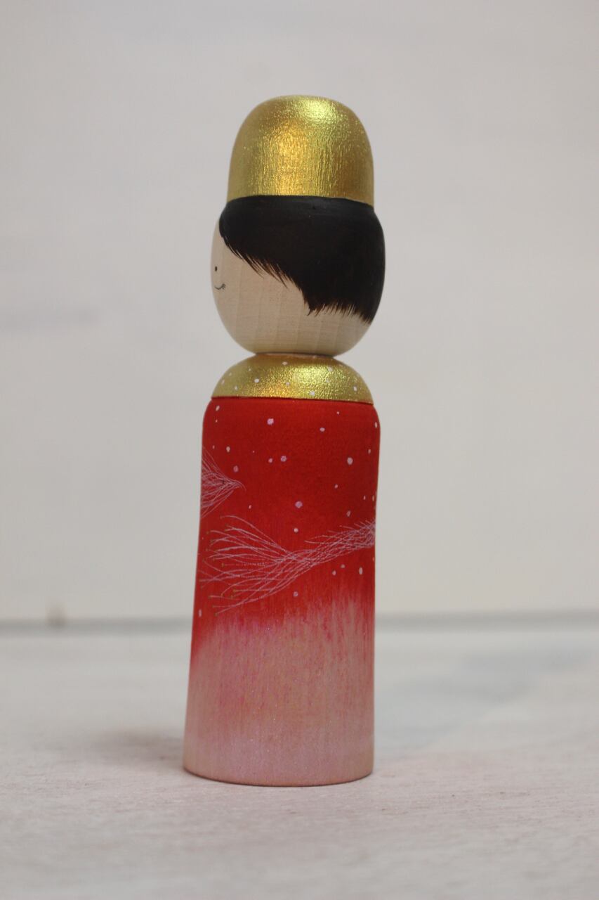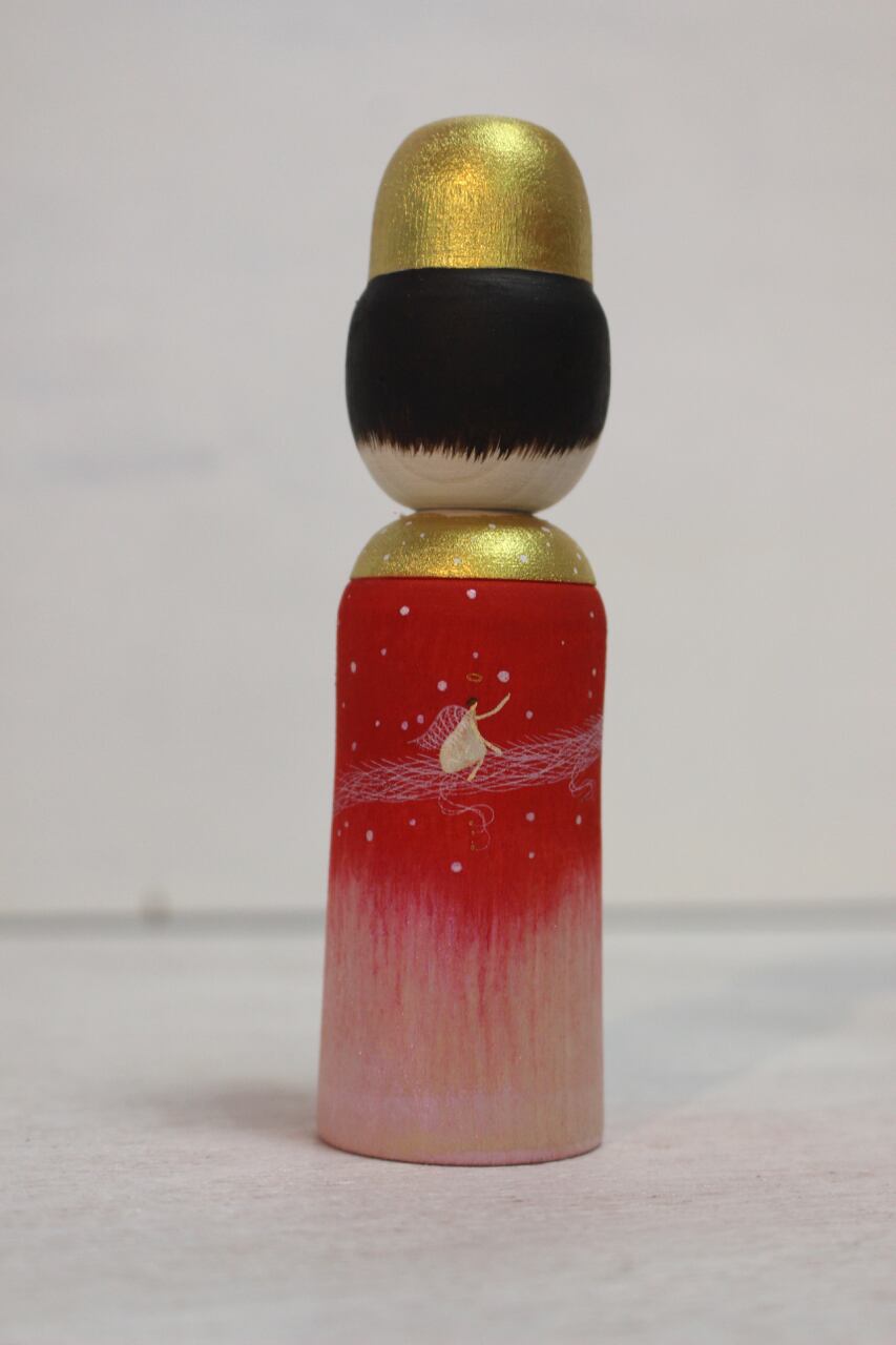 赤いお空に白い龍。 木地 : 南部系伝統こけし工人 田山和泉 着彩 : 水彩絵の具 高さ : 約 12cm ※水彩絵の具での着彩の為、濡れた手で触ったり、水滴などが付くとにじみや掠れなどが生じます。水気には充分ご注意ください。