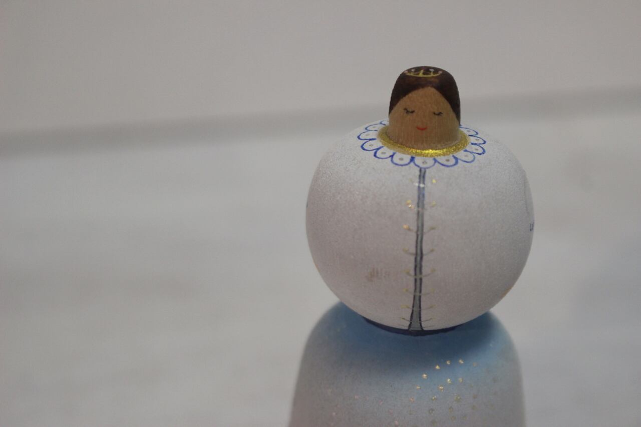 今にも咲きそうな。寒い季節にぎゅうと貯え咲き誇る。 木地 : 木地山系伝統こけし工人 本間功 着彩 : 水彩絵の具 高さ : 約 9.5cm ※水彩絵の具での着彩の為、濡れた手で触ったり、水滴などが付くとにじみや掠れなどが生じます。水気には充分ご注意ください。